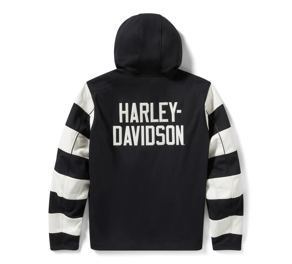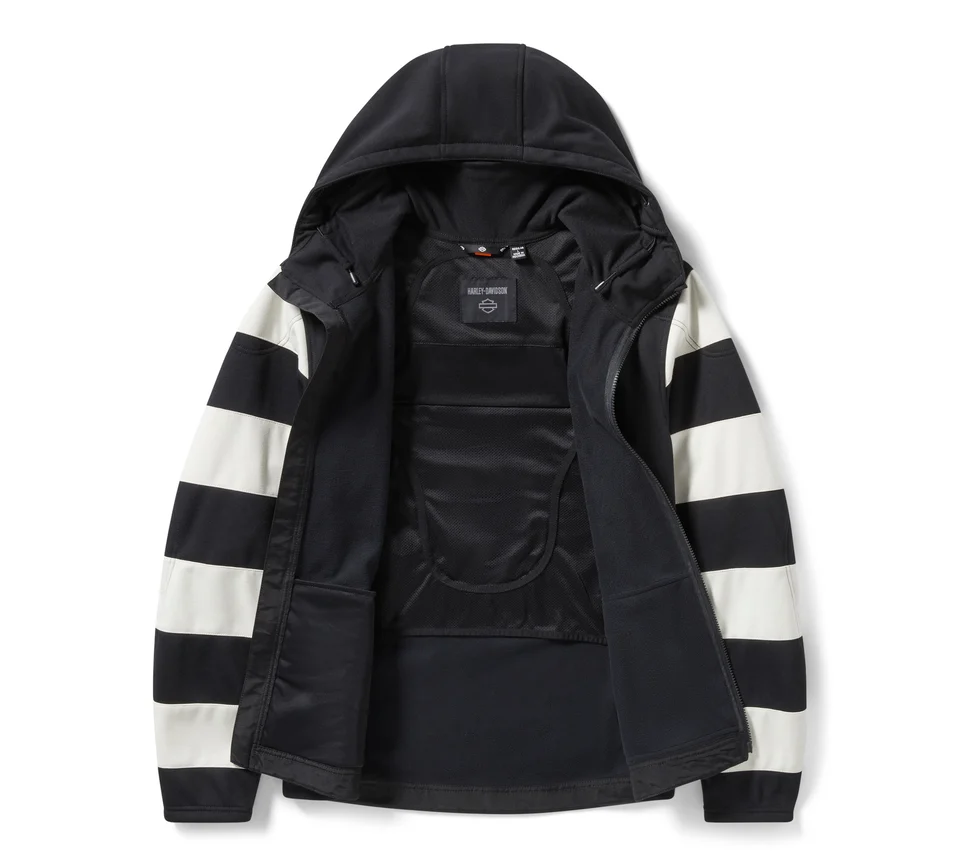 Lo stile nostalgico condivide la strada con una protezione funzionale nella felpa da moto con cappuccio H-D® Breakout Deflector 2.0. Questa giacca da moto è anche testata e certificata per soddisfare i requisiti di resistenza all’abrasione e allo strappo, e quelli relativi alla robustezza delle cuciture. La giacca comprende le protezioni D3O® Ghost™ su spalle e gomiti per migliorare la sicurezza alla guida. Realizzata in robusto poliestere stratificato con una fodera traspirante in tessuto mesh, è progettata sia per proteggere dal vento ma anche per consentire il passaggio dell’aria per maggior refrigerio. È dotato di materiale riflettente per migliorare la visibilità, orli laterali espandibili per un maggiore comfort e una tasca destra con cerniera per riporre le proprie cose. È rifinita con strisce sulle maniche tinte in filo e grafiche applicate in feltro ispirate alle maglie dei nostri team corse degli anni ’20. Leggi attentamente le specifiche pubblicate qui sotto, quindi ordinala il prima possibile.
